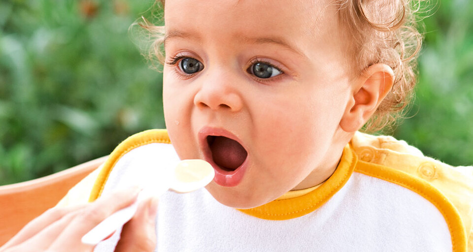 Starting to eat weaning food with a spoon